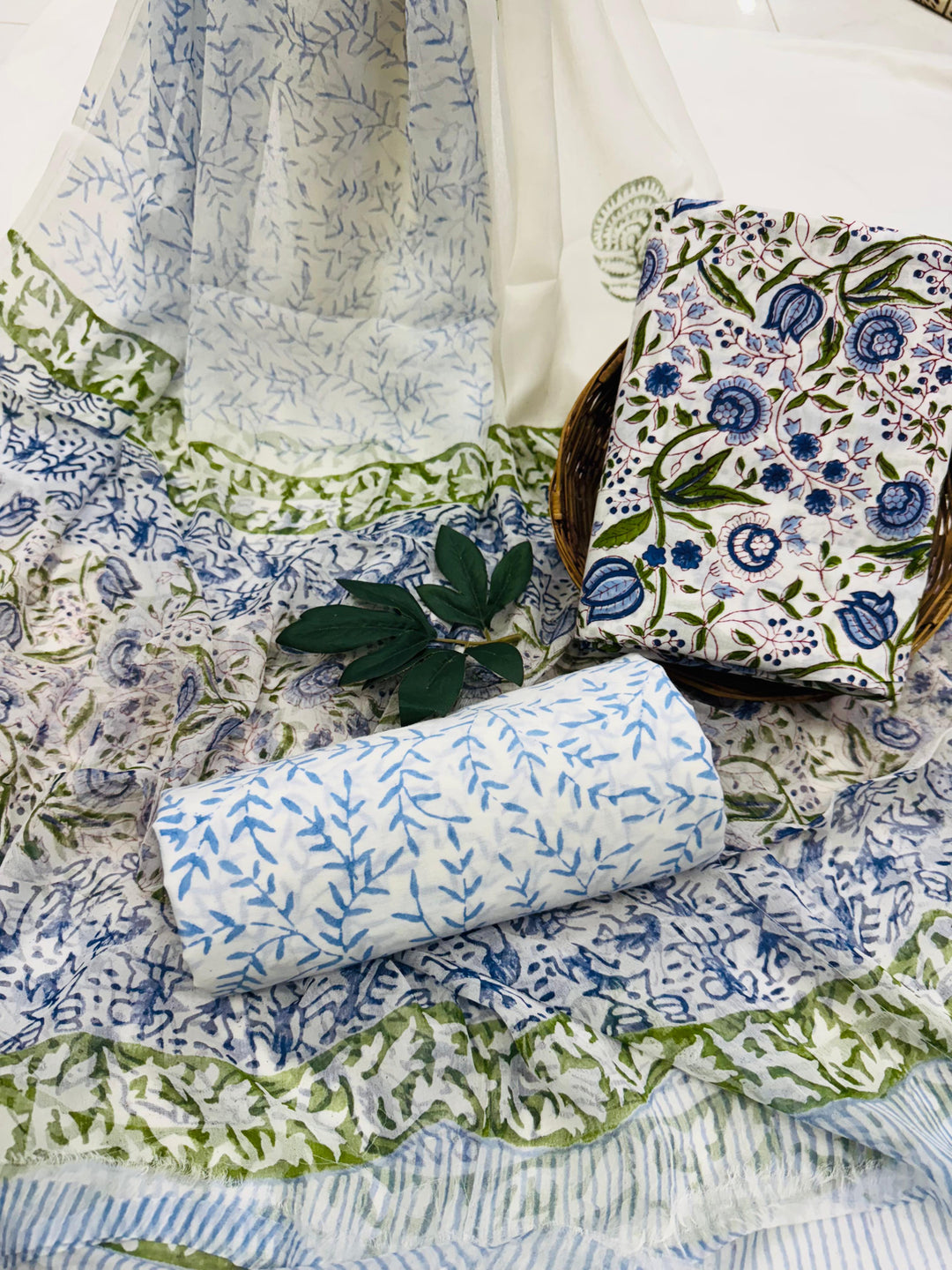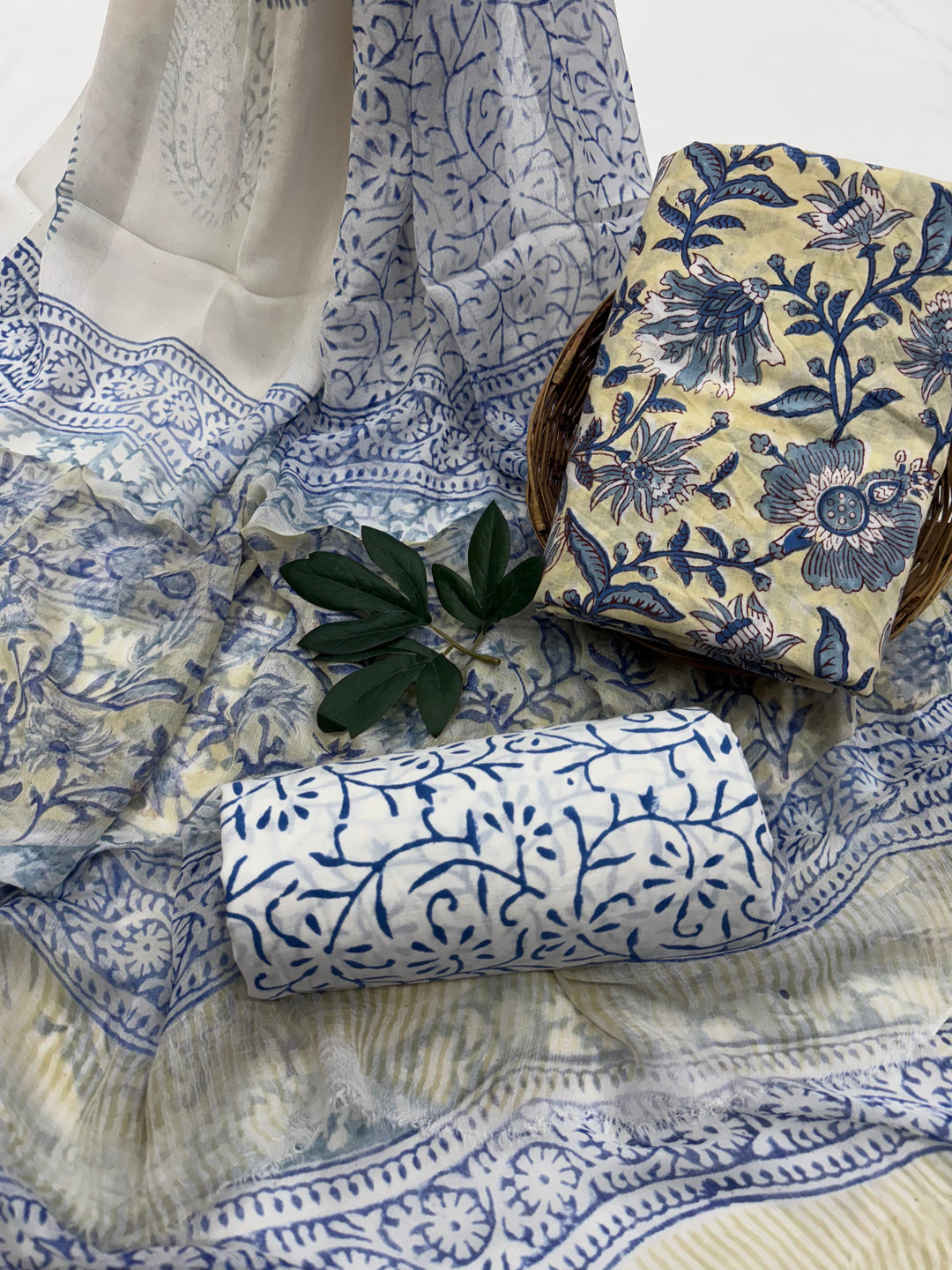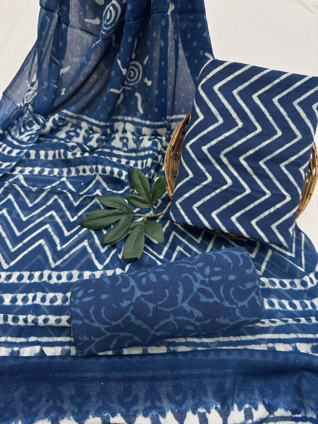 Indigo dabu Cotton Suit With Chiffon Dupatta