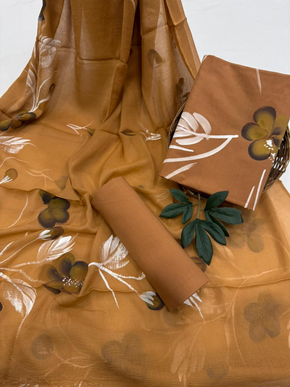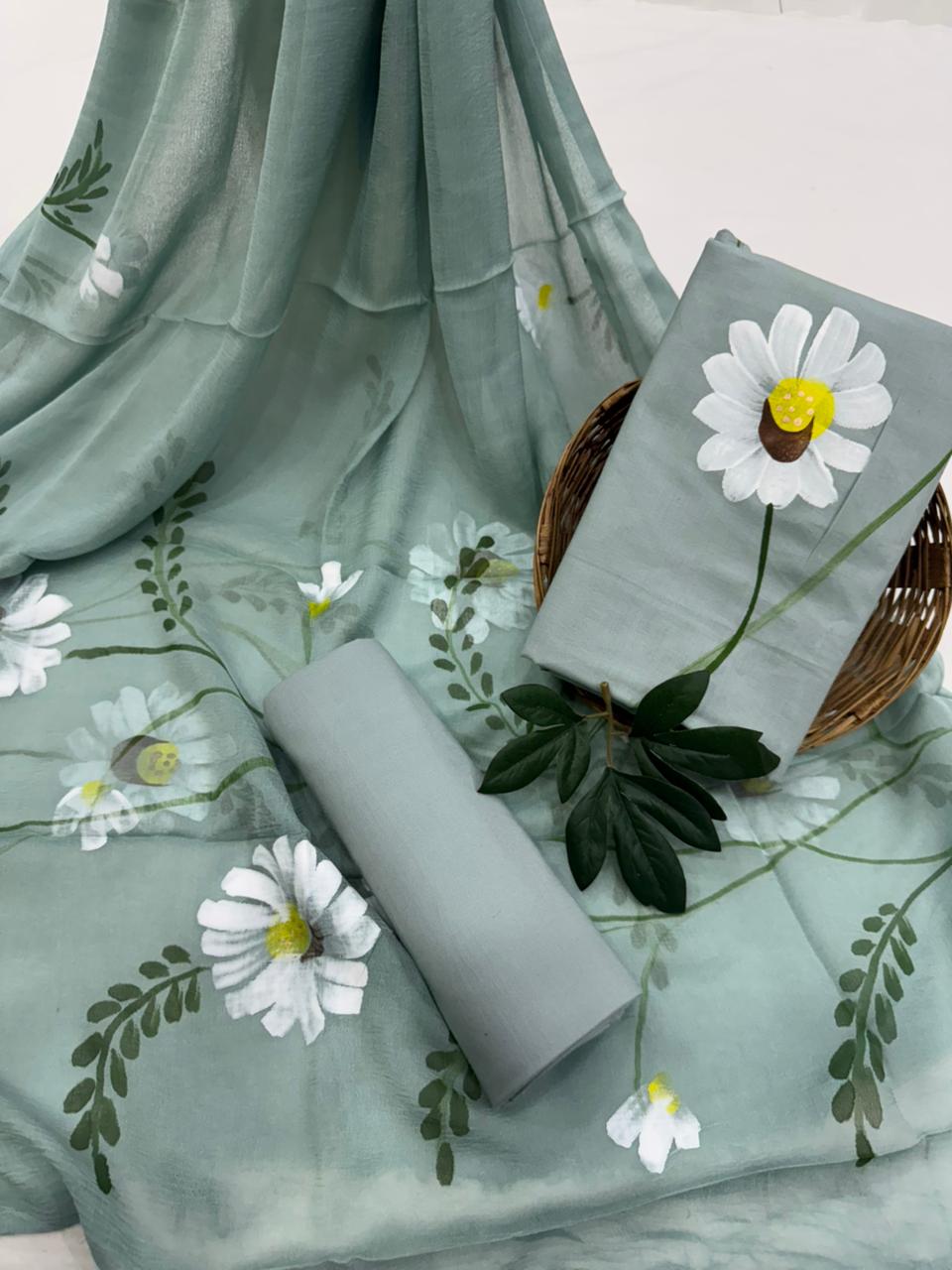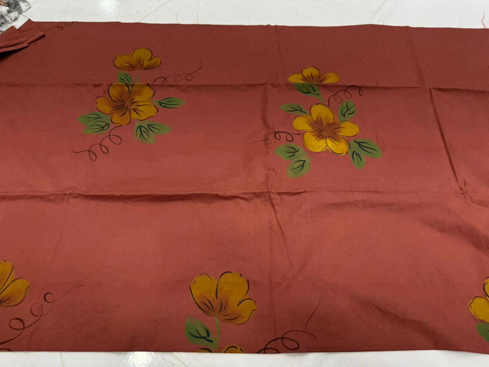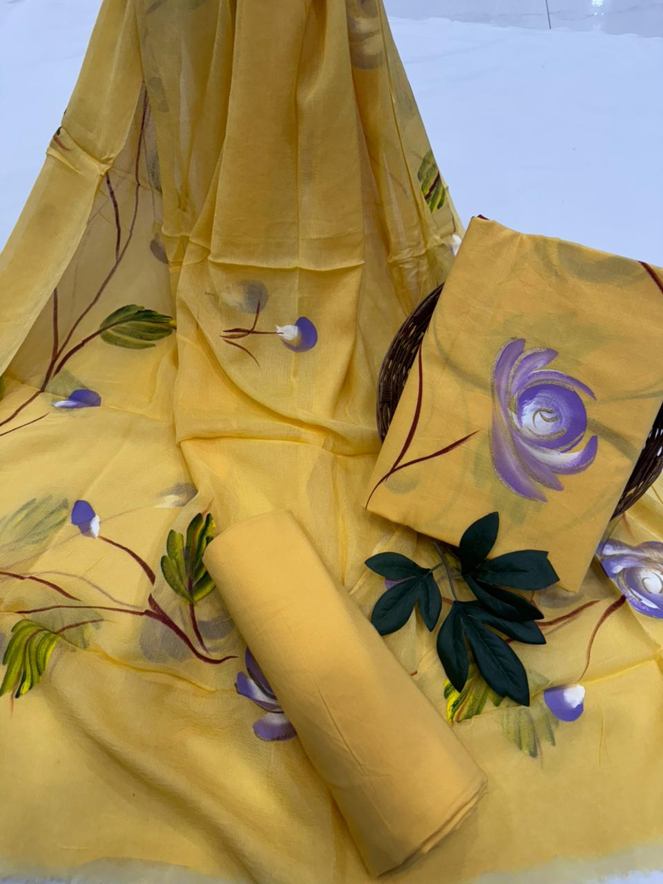 Hand Painted Cotton Suit With Chiffon Dupatta