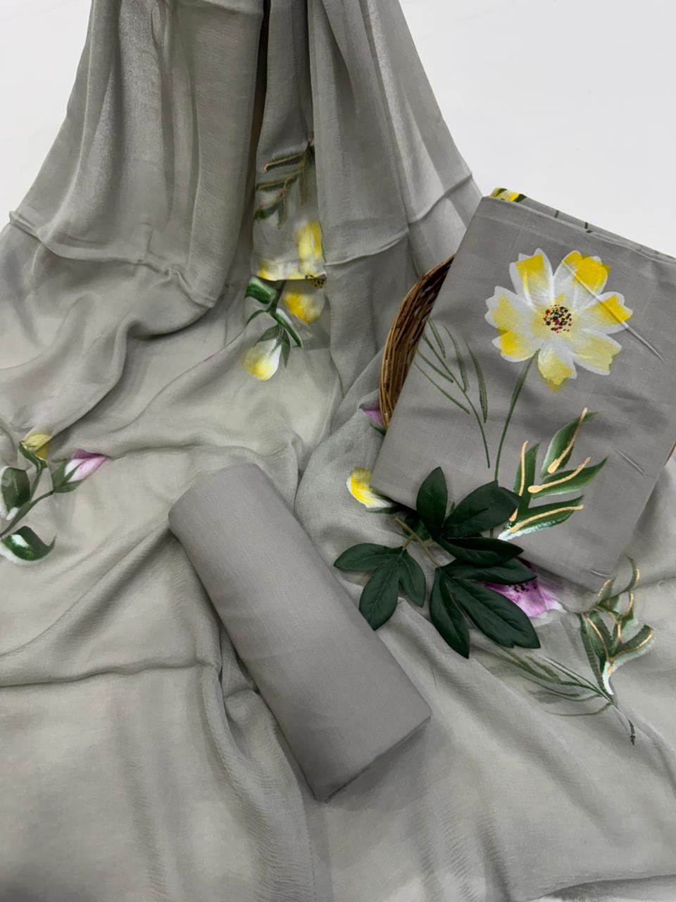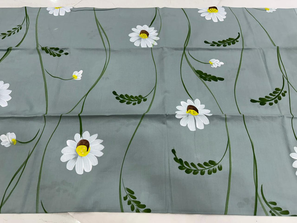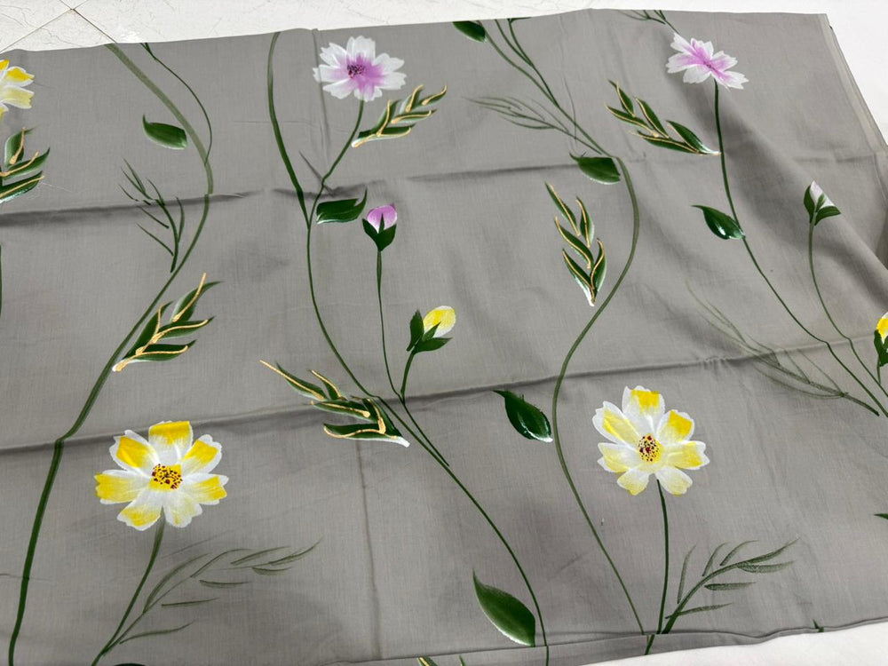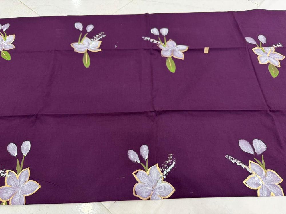 Hand Painted Cotton Suit With Chiffon Dupatta