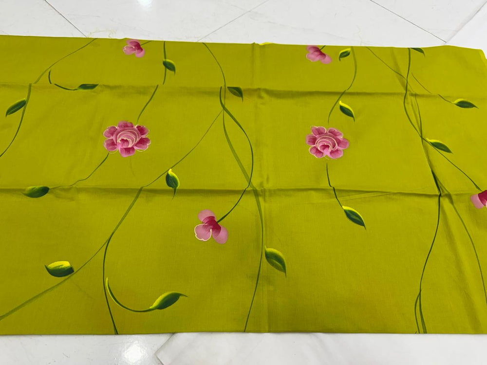Hand Painted cotton suit chiffon dupatta