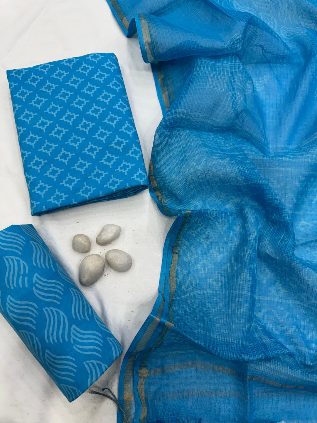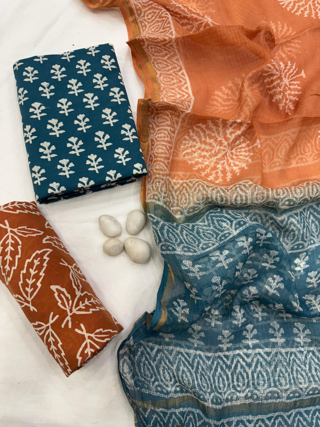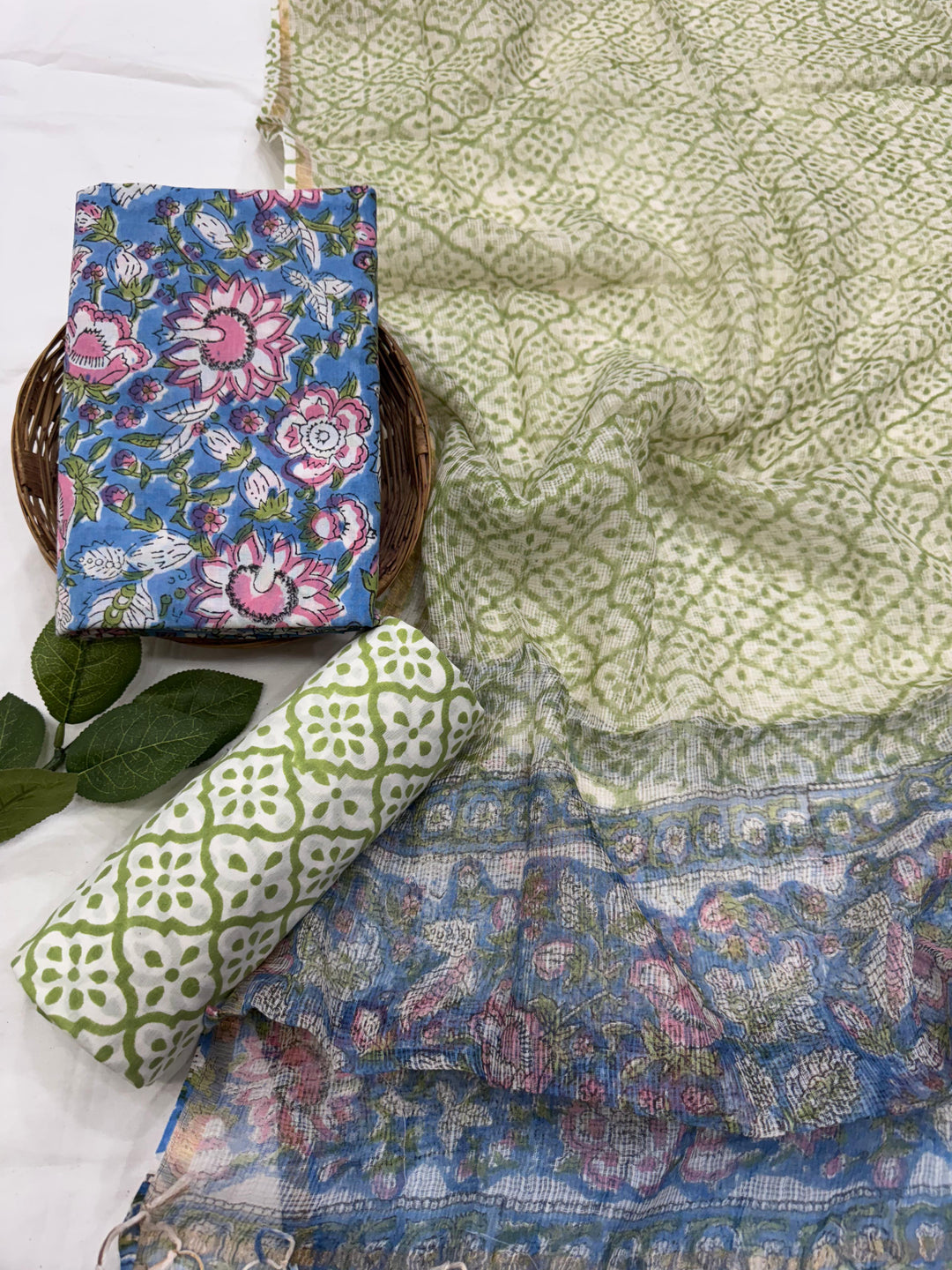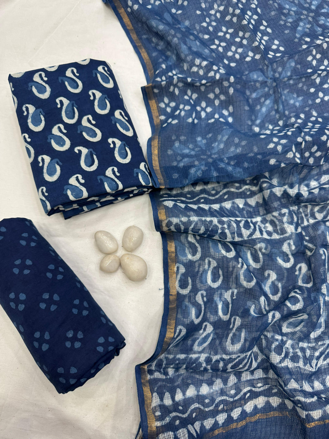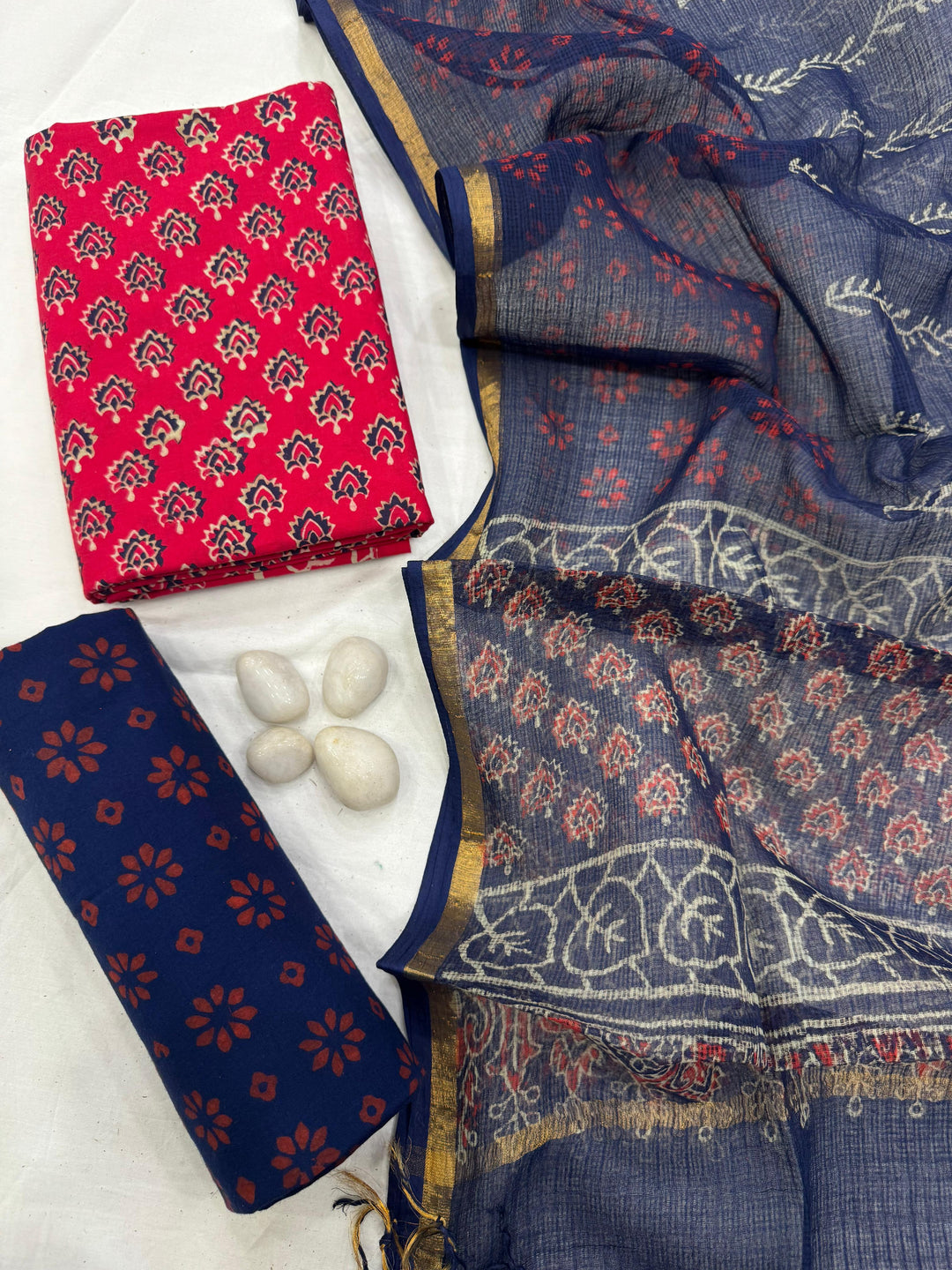 Block printed Cotton Suit Set With Kota Doriya Dupatta