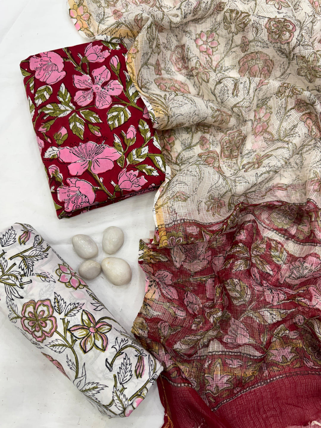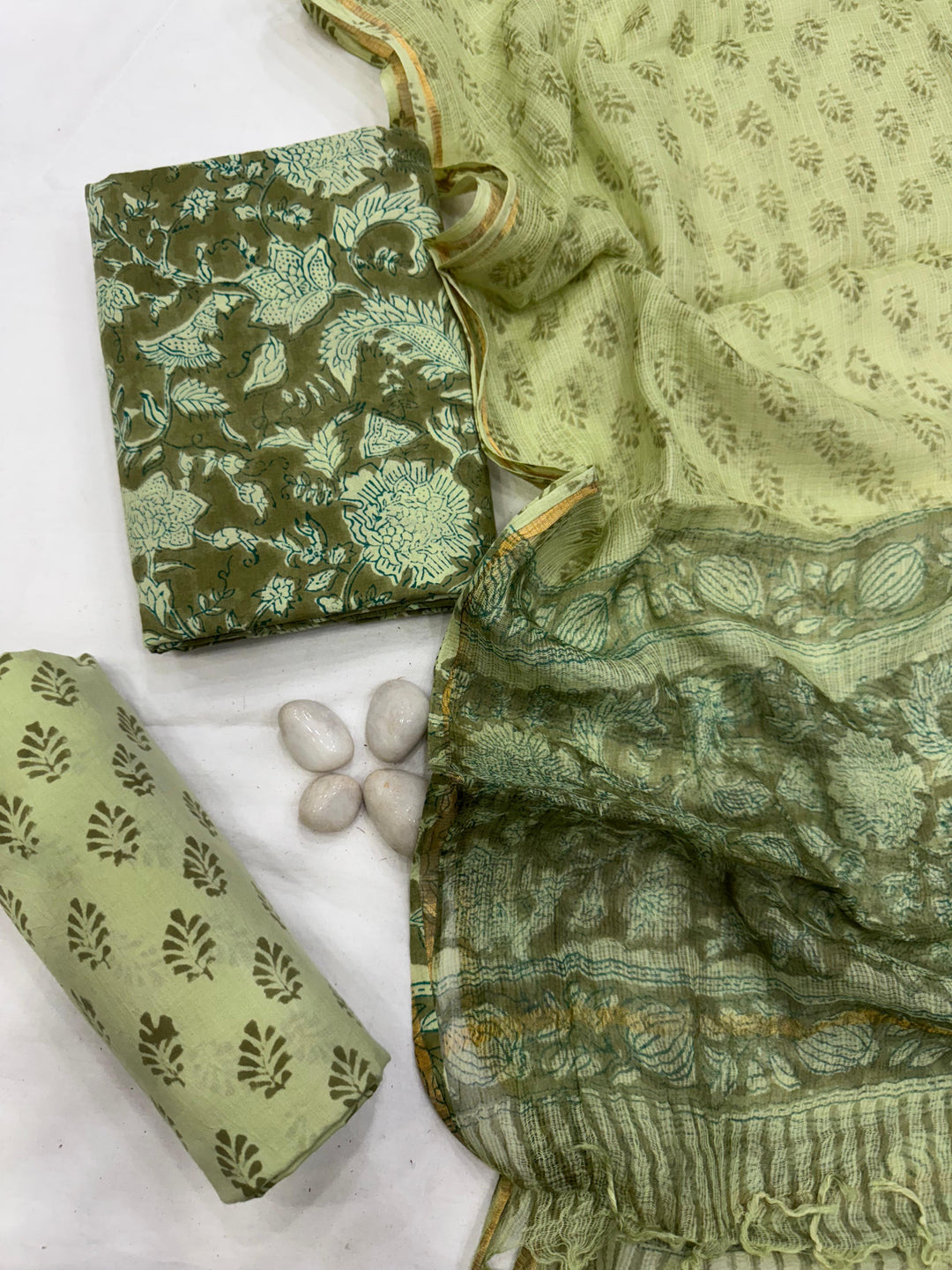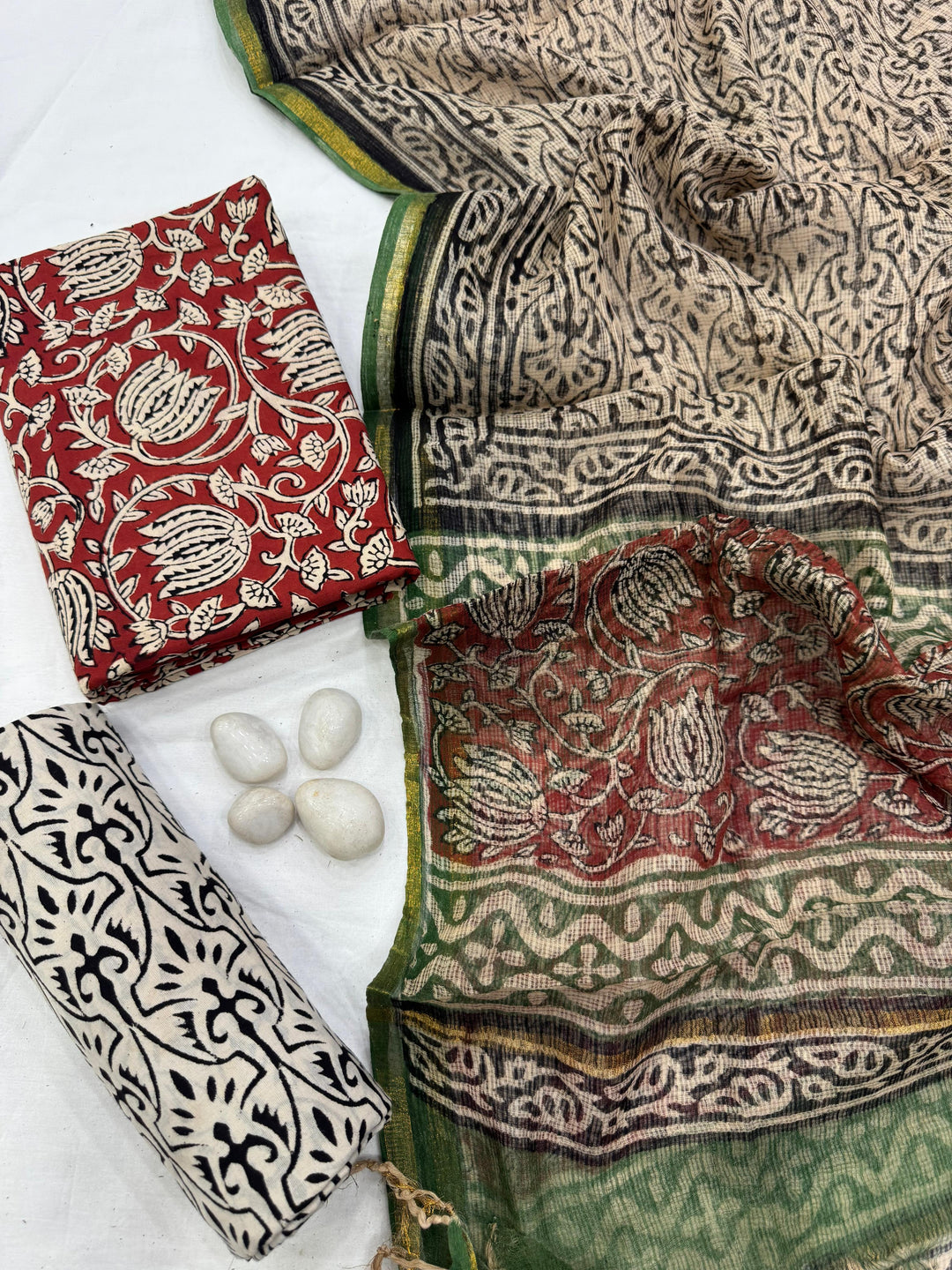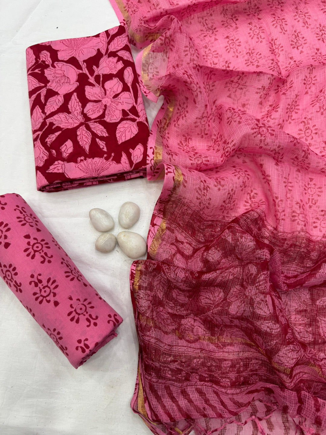 Block printed Cotton Suit Set With Kota Doriya Dupatta