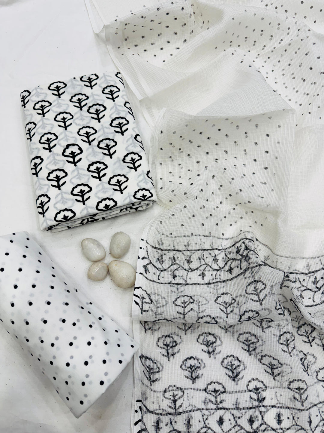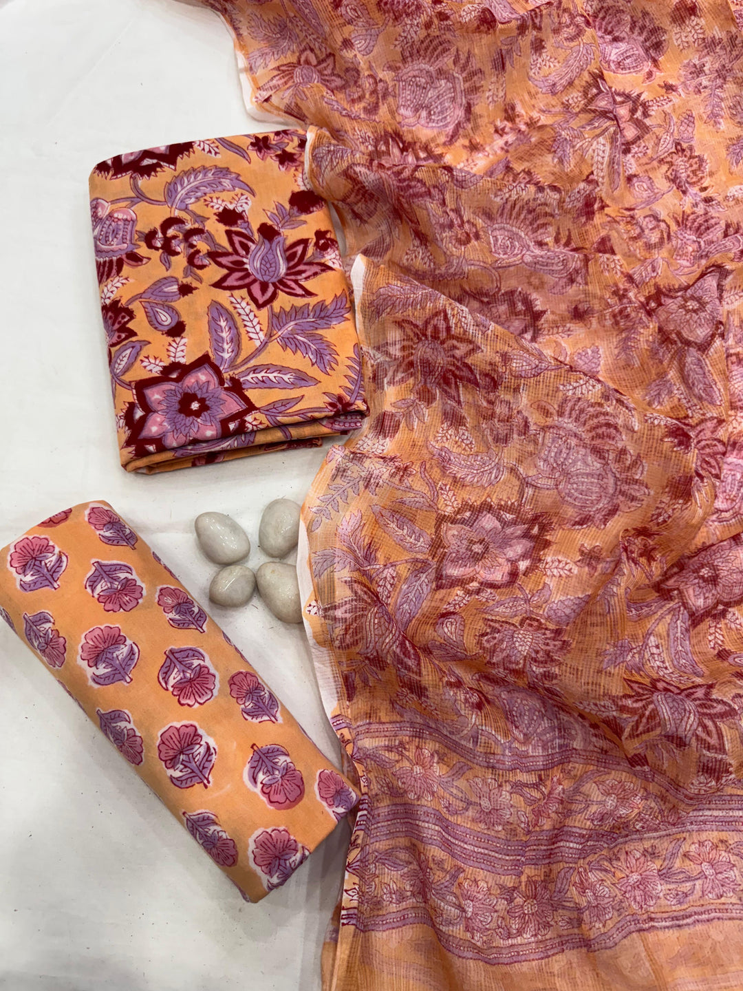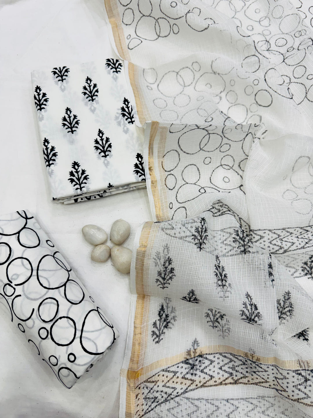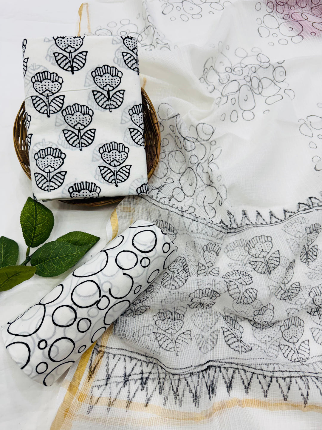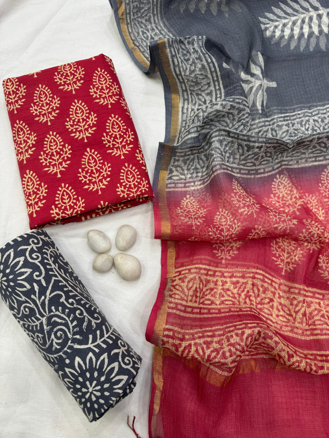 Block printed Cotton Suit Set With Kota Doriya Dupatta