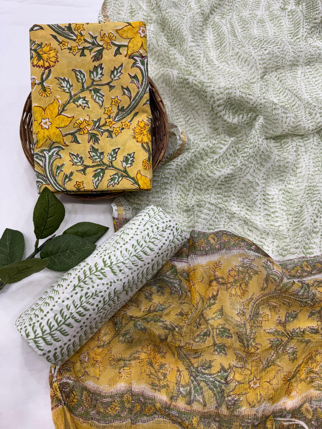 Bagru Print Cotton Suit With Kota Doriya Dupatta