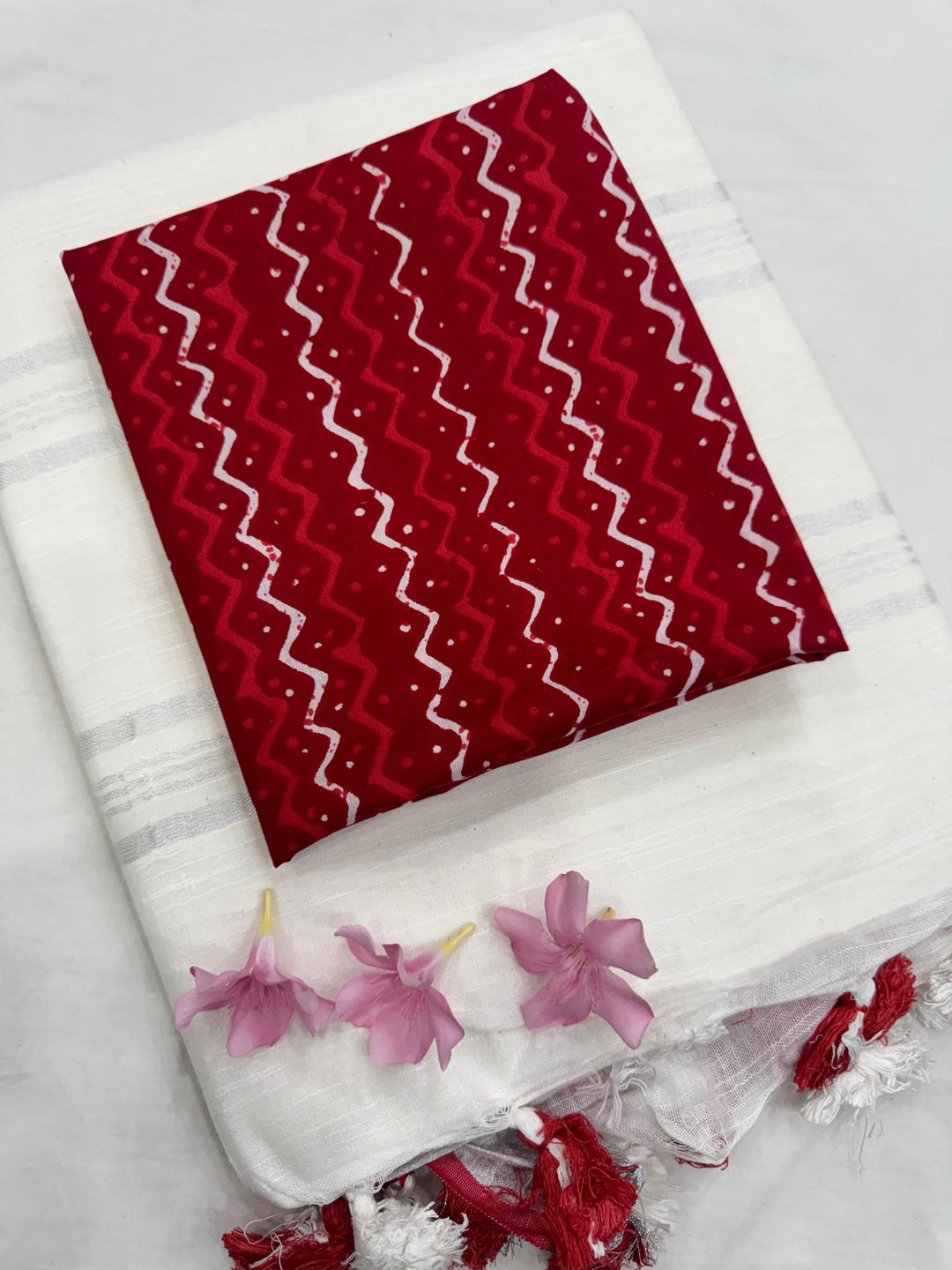 Bagru Handloom Cotton linen saree with printed cotton blouse