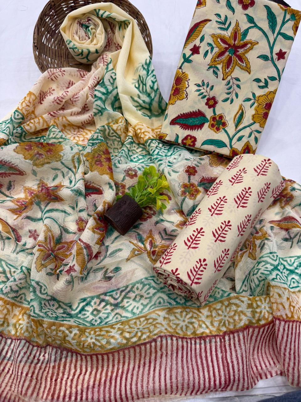 Bagru Cotton Suit Set With Kota Doriya Dupatta