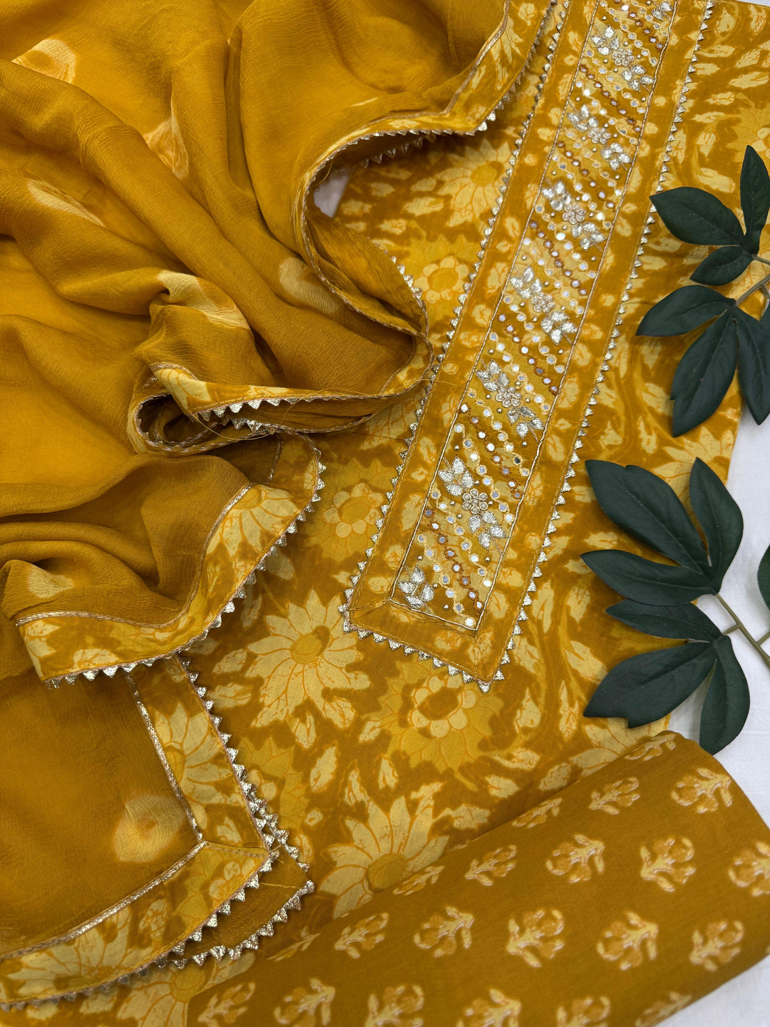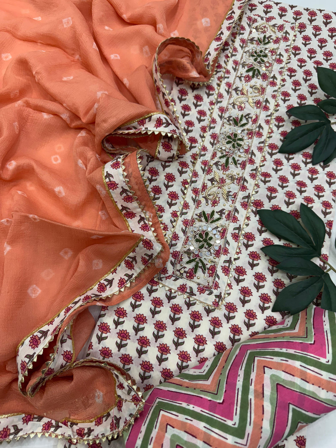 Embroidered Cotton Suit With Kota Silk Dupatta