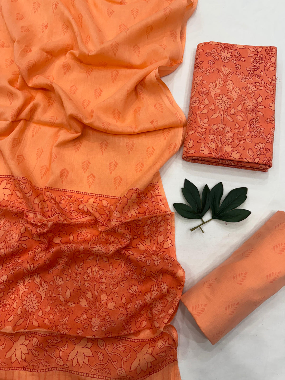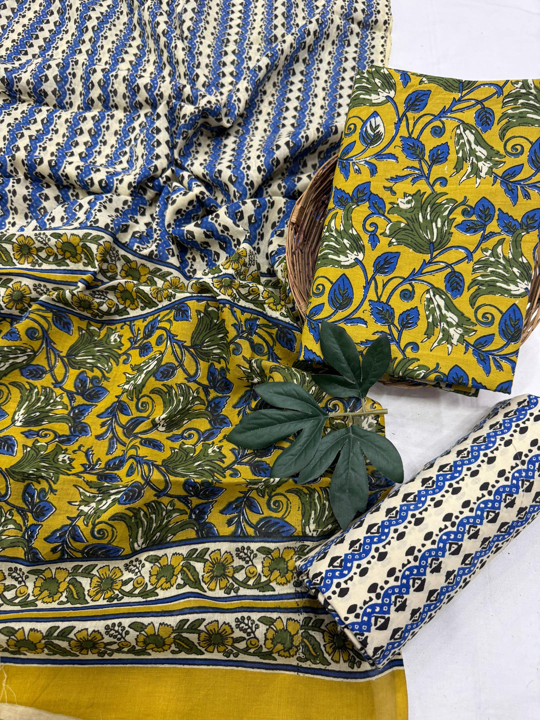 Traditional Bagru Print Cotton Suit set with Mulmul Dupatta