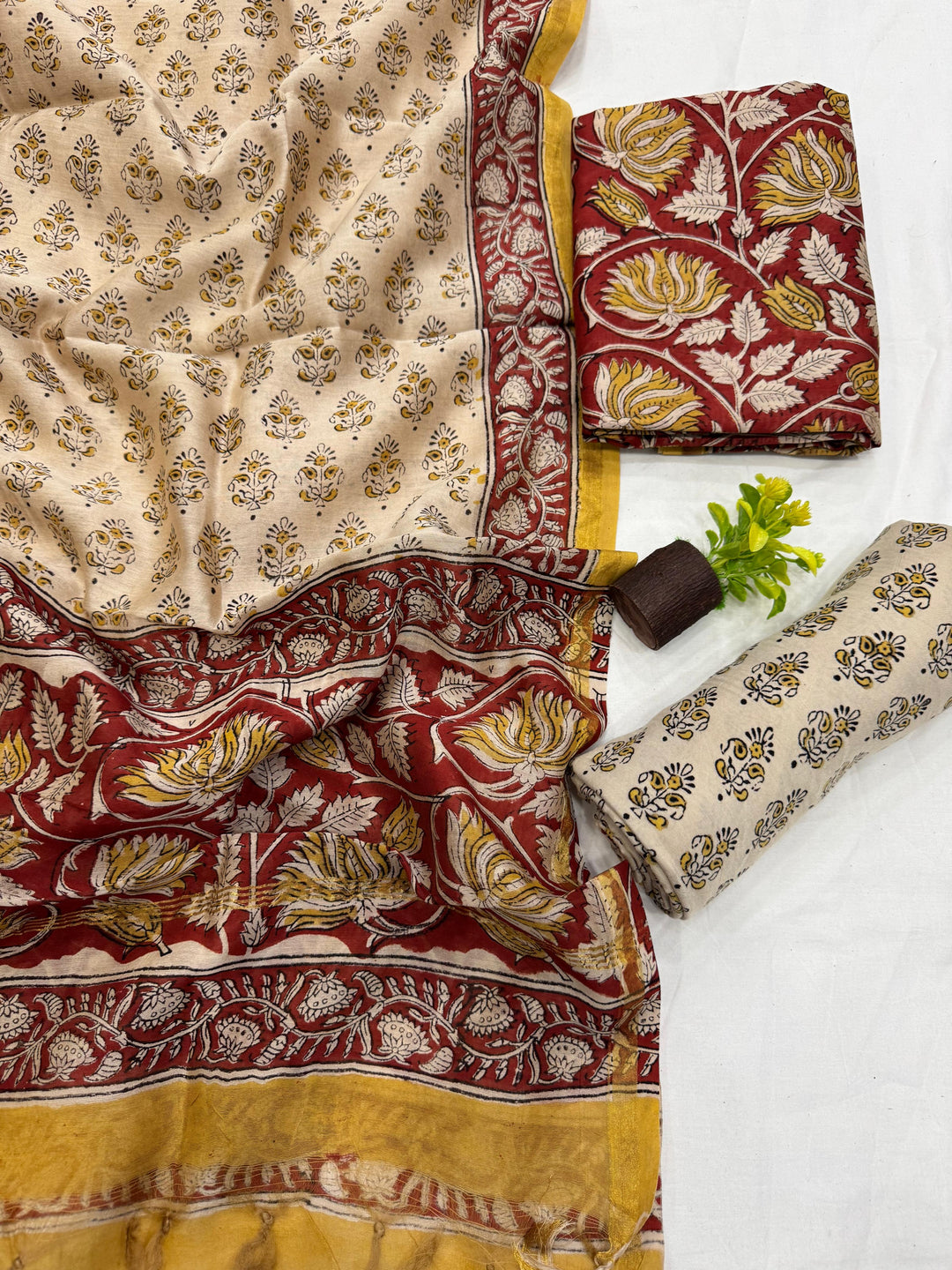 Exclusive chanderi silk suit set with *santoon* pajama and pure chanderi silk dupatta