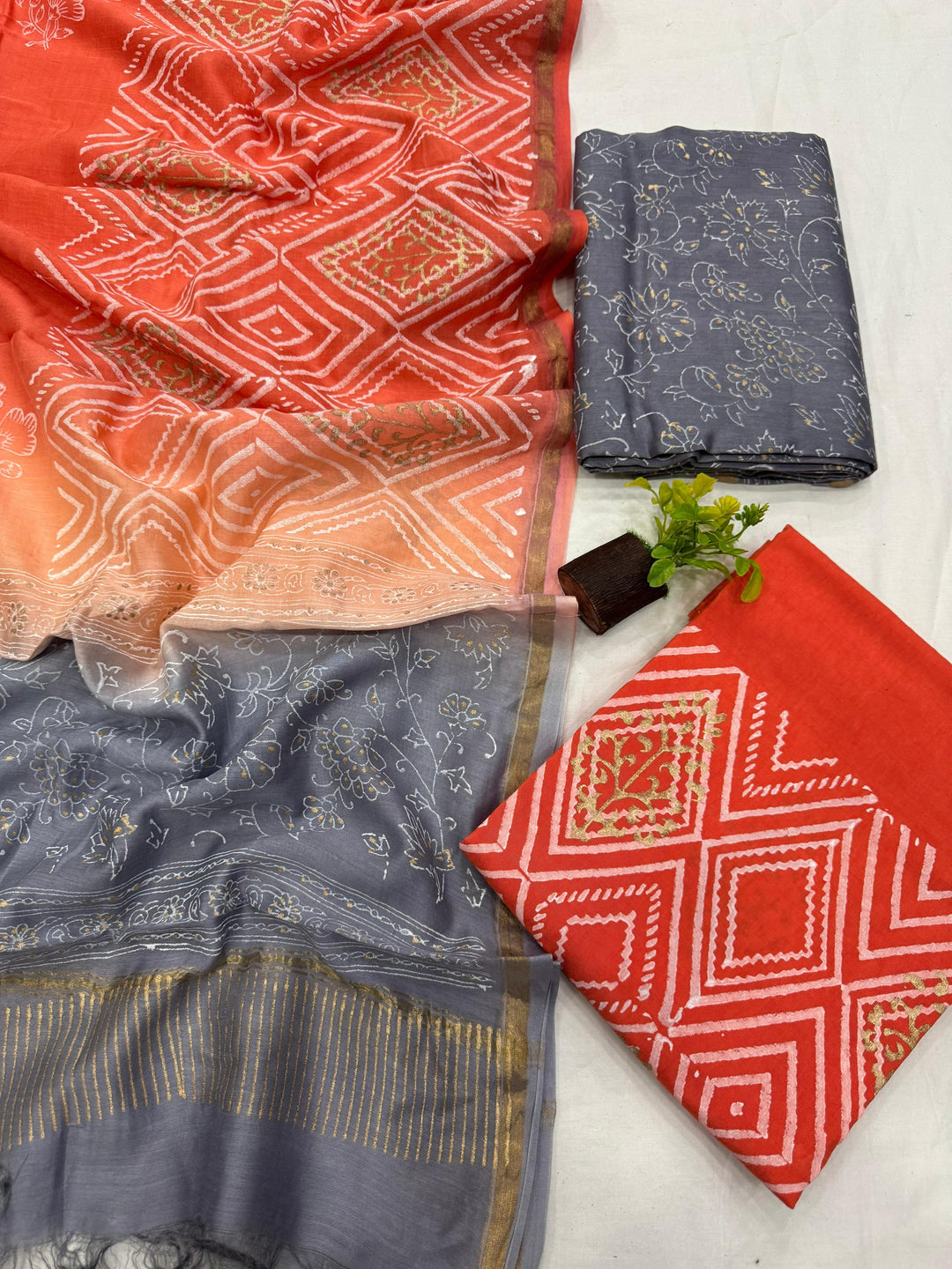 Exclusive chanderi silk suit set with *santoon* pajama and pure chanderi silk dupatta