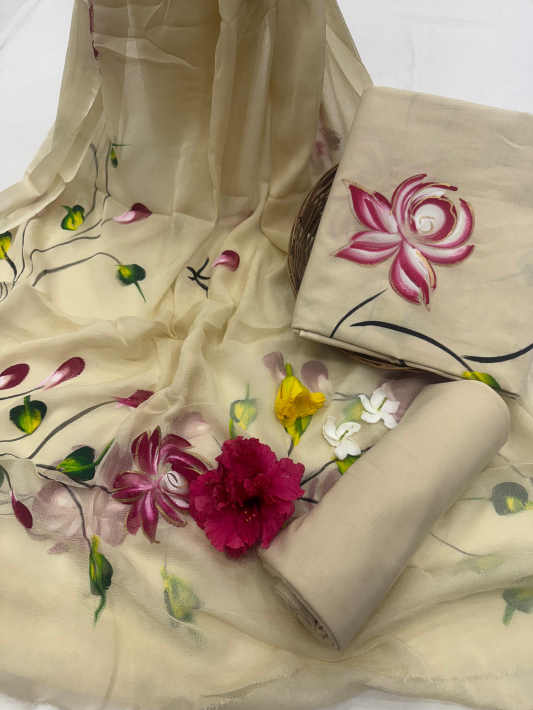 Hand Painted cotton suit chiffon dupatta