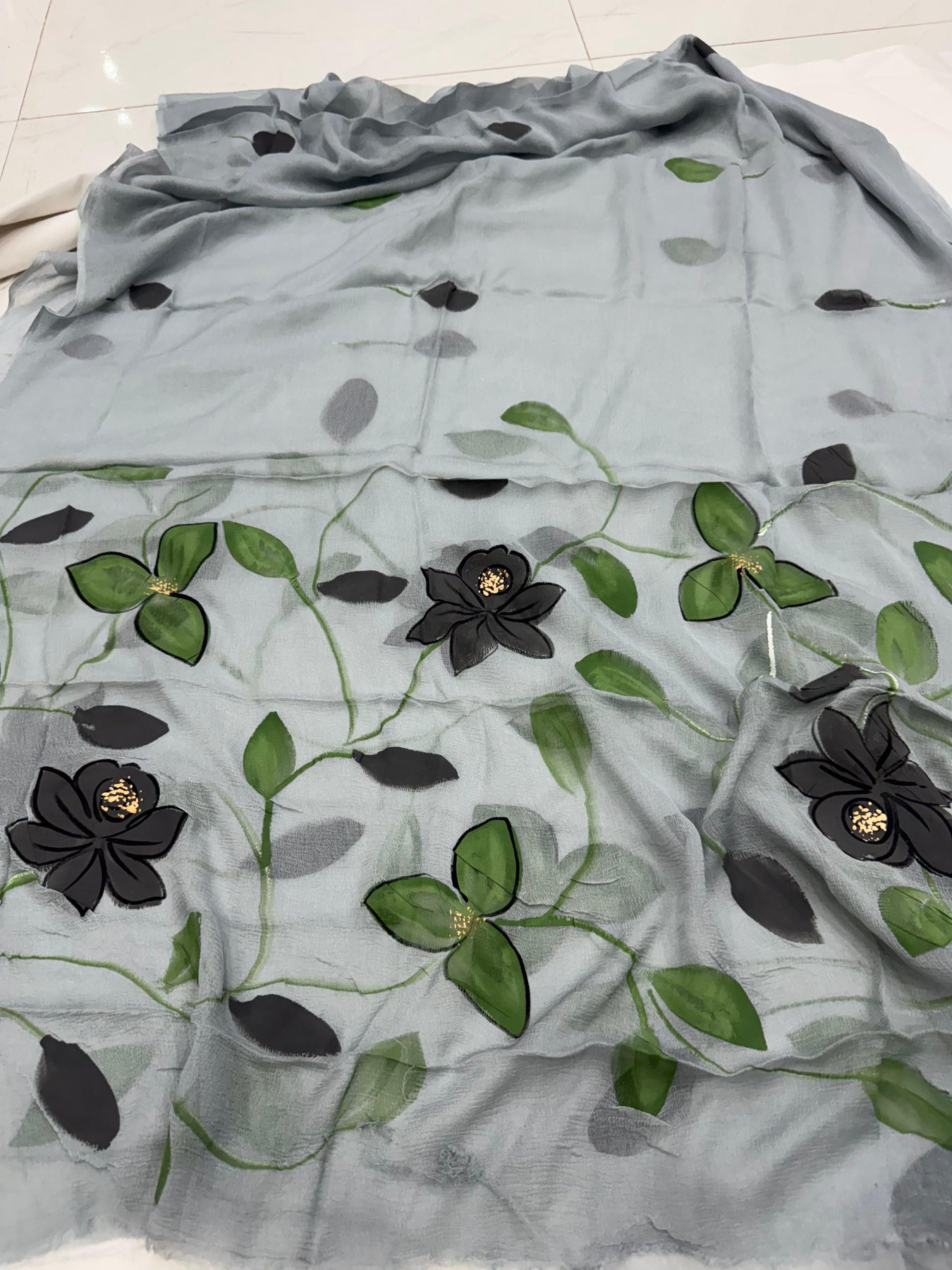 Hand Painted Cotton Suit With Chiffon Dupatta