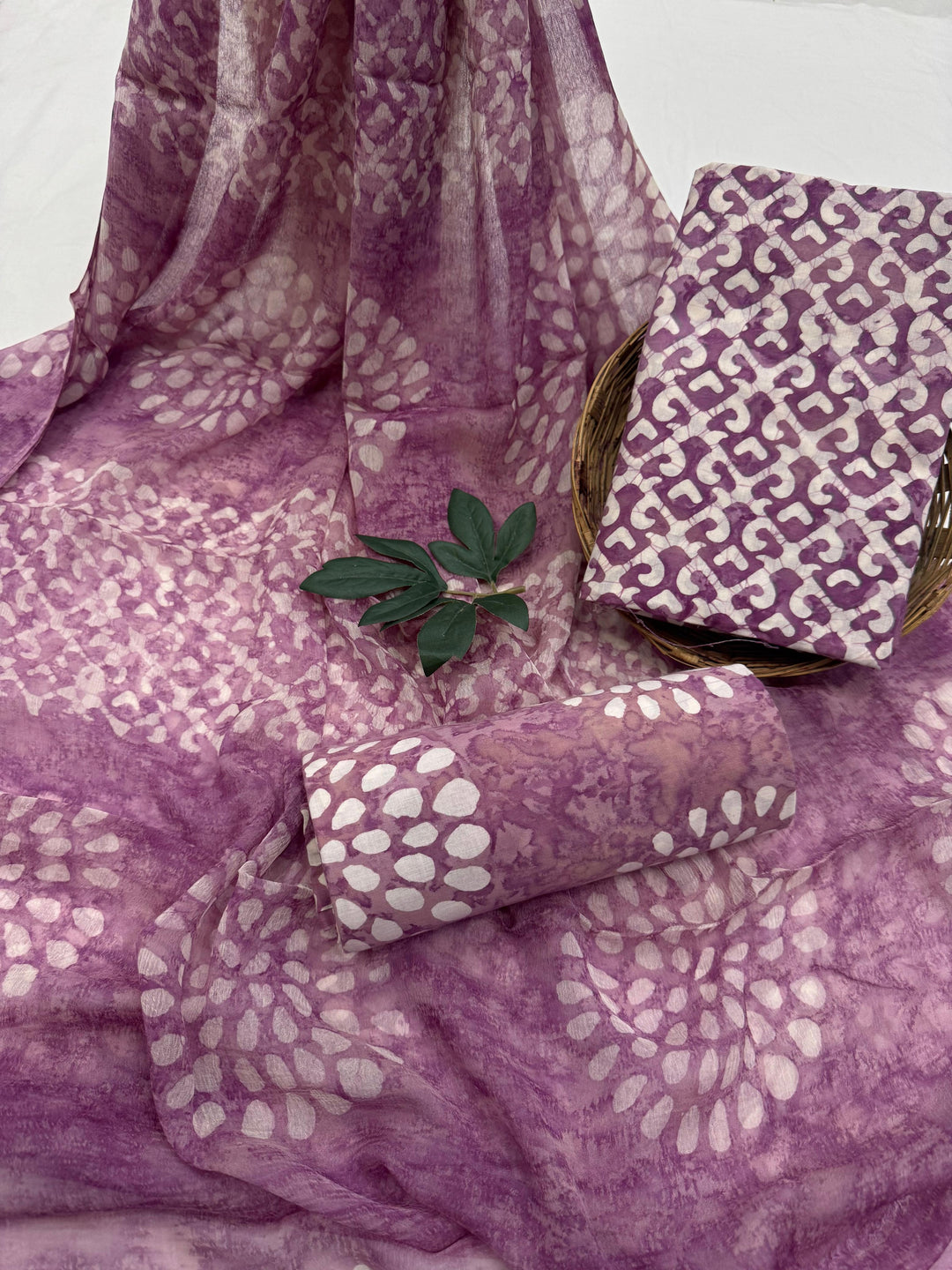 Exclusive hand block printed Cotton Suit set with chiffon Dupatta