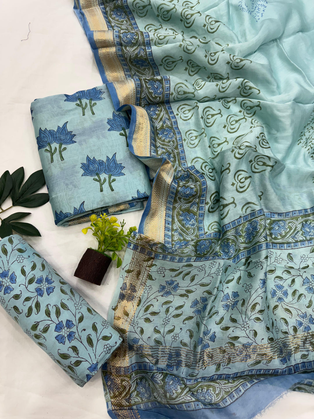Exclusive maheshwari silk suit set with *santoon* pajama and pure maheshwari silk dupatta